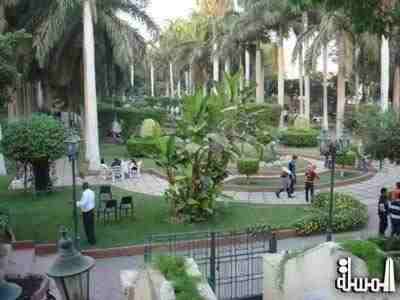 والآخر للعاملين بالحديقة وتنقسم لثلاثة أجزاء الجزء الشمالى وهو الحديقة الفرعونية فى أولها بوابة يتوسطها نموذج لتمثال شيخ البلد تحوى العديد من النخيل الملوكى وأشجار نادرة والجزء الأوسط ويطلق عليه الأندلس العلوية والمدرجات يتوجه تمثال من الحديد للشاعر أحمد شوقى من عمل محمود مختار أسفله خمسة تماثيل لأسود فى مواجهة بركة مستطيلة تحوى نافورتان من الرخام محاطة بمدرجات الحديقة المزروعة بالنجيلة يعلوها ممرات من أربعة جوانب مبلطة بالرخام تحوى مقاعد فاخرة والجزء الجنوبى ويطلق عليه الفردوس على شكل قبتين من الخضرة شرقية وغربية يتوسطهما فنار وكأنه المئذنة بين قبتين ويقع الفنار بوسط نافورة ثمانية الشكل مصنوعة من الرخام مزينة بالفسيفساء ومحاطة بثمانية أسود من الحجارة وثمانية ضفادع من الرخام و النافورة محاطة بمقاعد من الخزف والجزء الأوسط والجنوبى سجل أثراً من الآثار الإسلامية بمصر عام 2009 وأغلقت الحديقة عشر سنوات من عام 1991 حتى 2001 لأعمال الترميم الخاصة بالحديقة الفرعونية والتى قامت بها محافظة القاهرة وافتتحت فى 23 أبريل 2001