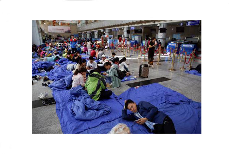 ويخيم عشرات السياح في مطار جيوتشايقو في انتظار طائراتهم. والمطار مفتوح ولكن تأخرت رحلات كثيرة.