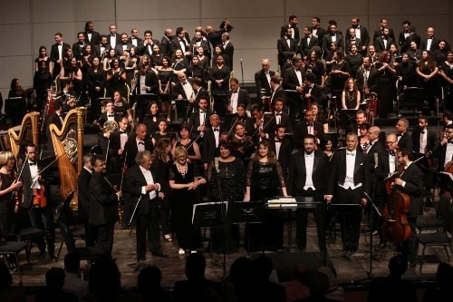 يشار ان حفل اوركسترا السيمفونى قد تضمن مجموعة من الاعمال الكلاسيكية الخالدة هى موسيقى الكرنفال من اوبرا نوتردام – انترميتزو لـ فرانز شميث ، كونشيرتو التشيللو والاوركسترا لـ سان صانص ، نوافير روما لـ ريسبيجى والسيمفونية التاسعة لبيتهوفن .