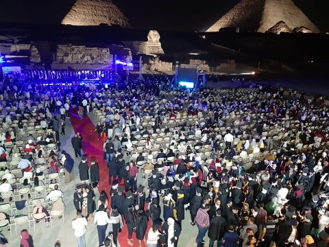 وقد صرح محمد عبد العزيز رئيس الصوت والضوء ان كعاده كل عام تحرص الكليه الامريكيه وكلية الفنون الجميلة وعدد من المدارس والجامعات على اقامه حفلاتهم السنوية الخاصة بتخرج طلابها على مسرح الصوت والضوء والذي اصبح تقليد ا يتبعه كثيرا من الجامعات والمدارس نظرا لعظمه المكان وتاريخه العريق لتشهد بانوراما الاهرام تخرجهم..
