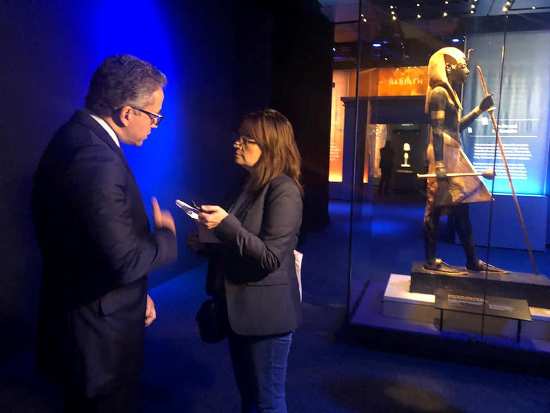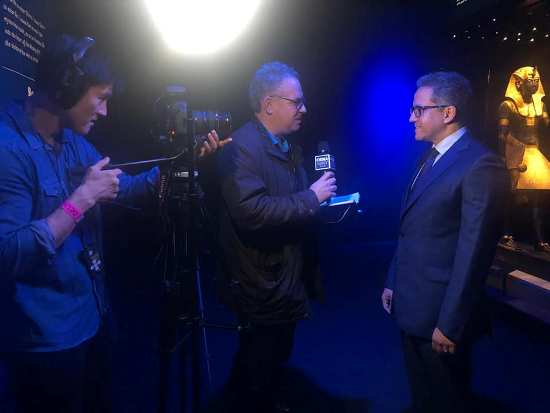 القاهرة “المسلة السياحية” ….. اجري الدكتور خالد العناني وزير الاثار العديد من اللقاءات الصحفية و التليفزيونية و ذلك علي هامش الافتتاح الرسمي لمعرض توت عنخ امون: كنوز الفرعون الذهبي حيث تهافت الإعلام البريطاني و العالمي من صحفيين وإعلاميين ومراسلين أبرز القنوات ووكالات الأنباء البريطانية والعالمية و العربية و المصرية على إجراء لقاءات صحفية وحوارات إذاعية وتليفزيونية .