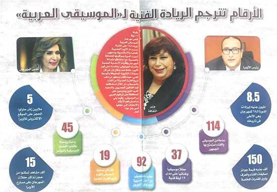 من جانبه قال رئيس الاوبرا ان الدورة ٢٨ من مهرجان ومؤتمر الموسيقى العربية حققت 8.5 مليون جنيه ايرادات وتعد الاعلى فى تاريخه وضمت ١١٤ ساعة من الموسيقى والغناء جاءت خلال ٣٧ حفلا اقيمت على مسارح الاوبرا بالقاهرة والإسكندرية ودمنهور وشارك خلالهم ٩٢ مطربا وموسيقيا من ٧ دول عربية وحضرها 15 الف مشاهد من 5 ملايين زائر حاولوا حجز بطاقات الحضور من الموقع الاليكترونى ، واضاف ان جوائز مسابقة الموسيقى والغناء المصاحبة حصل عليها 19 فائزا وبلغ اجمالى قيمتها المادية 150 الف جنيه ، مشيرا ان المؤتمر العلمى شهد مشاركة ٤٥ باحث من ١٥ دولة عربية واجنبية .