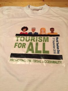 أوضحت وكيل وزارة السياحة بالإسكندرية أن فى إطار هذه المبادرة تم طبع عدد كبير من التى شيرتات تحمل شعار إحتفال منظمة السياحة العالمية بيومها ليتم توزيعه على شباب الإسكندرية ولنشر الوعى السياحى بينهم خاصة وأن المنظمة ترفع شعار . " السياحة للجميع..تعزيز العالمى المعاقين"، إنها حق لكل شخص فى الحصول على خدمات الترفية والسياحة على قدم المساواة، مشيرة إلى وجود نحو مليار شخص يتعايشون مع الإعاقة فى جميع أنحاء العالم إلى جانب كبار السن والأطفال الصغار، لازالت تواجههم عقبات فى الحصول على أسياسات السفر مثل معلومات واضحة وموثوق بها.