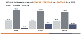 As a result, year-on-year TrevPAR at hotels in Kuwait declined by 25.9% in June, to $185.57 from $250.41 during the same period in 2015. Despite cost savings in both labour (-16.8%) and overheads (-8.2%) Kuwait hotels suffered a 35.2% decline in profit per room this month, to $55.71.