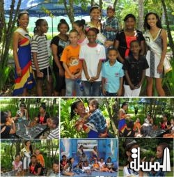 The newly- crowned Miss Seychelles…Another World, Agnes Gerry, last Friday met with a group of nine children who suffer from hearing impairment from the School of the Exceptional Child