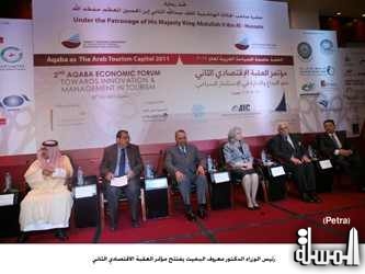 تحت شعار "نحو الابداع والادارة في الاستثمار السياحي" بمشاركة عدد من وزراء السياحة العرب ورؤساء المنظمات العربية والاقليمية والدولية ورجال الاعمال.. ومندوبا عن جلالة الملك عبدالله الثاني افتتح رئيس الوزراء الدكتور معروف البخيت في مدينة العقبة صباح اليوم مؤتمر العقبة الاقتصادي الثاني الذي تنظمه وزارة السياحة والاثار بالتعاون مع غرفة تجارة الاردن.