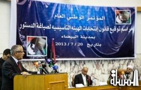 طرابلس "المسلة" مصطفى فنوش - القى الدكتور على زيدان رئيس وزراء الحكومة المؤقتة الليبية كلمة على هامش حفل مراسم توقيع قانون انتخاب الهيئة التاسيسية لصياغة الدستور بمدينة البيضاء شرق ليبيا اكد فيها " ان الشعب الليبي بكل اطيافه واتجاهاته قادر على تخطى المصاعب والاهوال مهما صعبت وعلينا التحلى -----بالصبر والعزيمة للمضى قدما فى طريق الامل وتحقيق الديمقراطية التى قمنا من اجلها بالثورة .. لنحقق على ارض الواقع ليبيا التى حلمنا بها طوال عمرنا .