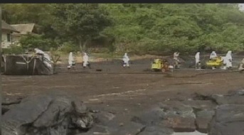 وقد قامت السلطات بنشر أكثر من مائتي جندي وعدد من السفن الحربية لمحاصرة بقع النفط وإزالتها.