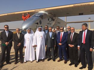 بالصور.. وزير الطيران المصرى يستقبل اول طائرة تعمل بالطاقة الشمسبة