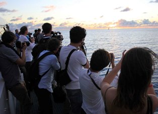 The vessel cruised slowly to the stunning bay of Beau Vallon to watch the stunning Seychelles sunset over Silhouette Island before coming back to drop anchor at the Sainte Anne Marine National Park for the “ Dialogue with the Press’’.