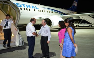 Almasalla- Arab Travel Portal News - Air Austral first non-stop commercial direct flight between La Reunion Island and the Seychelles has landed in Seychelles. It was exactly 20h25, Monday 23rd of June that an Air Austral Boeing 737, made its historical landing on the Seychelles International Airport with 93 passengers -----on board.
