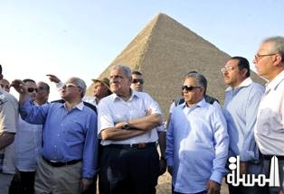 القاهرة " المسلة " ... تفقد المهندس ابراهيم محلب رئيس مجلس الوزراء وهشام زعزوع وزير السياحة وممدوح الدماطي وزير الاثار وعلى عبدالرحمن محافظ الجيزة أعمال التطوير في منطقة الاهرامات الاثرية والتي تهدف للارتقاء بالمنطقة والخدمات المقدمة بها وذلك بعد أن قدمت وزارة السياحة الدعم اللازم لتطوير المنطقة في ضوء -----توجيهات رئيس الوزراء بضرورة الارتقاء بالمنطقة باعتبارها أحد أهم كنوز مصر الاثرية .