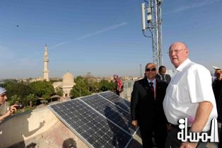 الاقصر " المسلة " ... افتتح اللواء عادل لبيب وزير التنمية المحلية واللواء طارق سعد الدين محافظ الاقصر محطة الطاقة الشمسية اعلي مبني مركز المؤتمرات الدولي بالاقصر بحضور كلا من وزير التطوير الحضاري الدكتورة ليلي اسكندر ومحافظي جنوب سيناء والجيزة والقليوبية ورئيس منظمة الاورومتوسطي وذلك علي هامش مشاركتهم في الاجتماع -----الثالث عشر للمنظمة والذي عقد باحدي الفنادق الخاصة بالاقصر اكد محافظ الاقصر اهمية التفكير في استغلال الطاقة الشمسية في توليد الكهرباء حيث بادرت المحافظة بإنشاء اول محطة طاقة شمسية اعلي ديوان عام المحافظة لتكون اولي المحافظات استغلالاً لهذا المورد المتجدد .بلغت تكلفة المحطة نحو 3 مليون جنيه وتغذي مبني مركز المؤتمرات والشوارع المجاورة بقدرة 70 كيلو وات