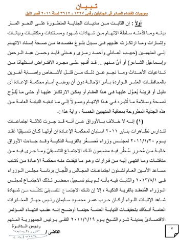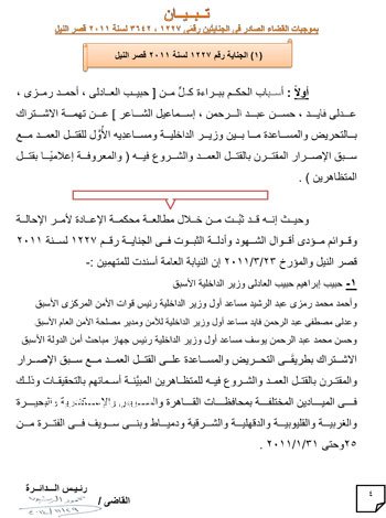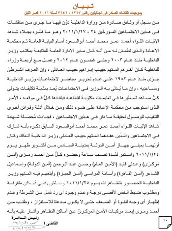 حيثيات الحكم ببراءة مبارك ونجليه والعادلي ومساعديه الستة في إعادة محاكمتهم