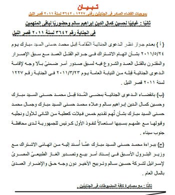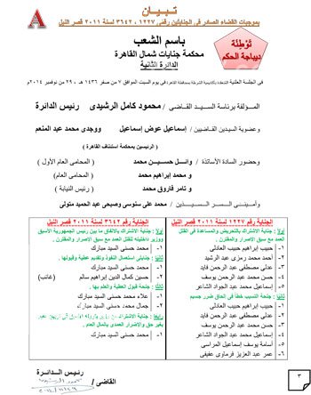 القاهرة " المسلة " .... ننشر حيثيات الحكم ببراءة مبارك ونجليه والعادلي ومساعديه الستة في إعادة محاكمتهم