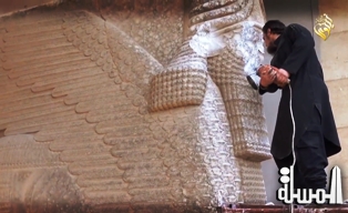 "داعش" الارهابية تنشر فيديو يظهر تدمير آثار متحف الموصل التاريخية