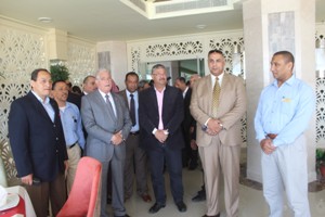 رافق المحافظ اللواء محمود عيسي سكرتير عام المحافظة، واللواء جمال الريس السكرتير العام المساعد، وممثلي رجل الشرطة والجهاز التنفيذي وبدو طابا، ورجال الأعمال والمستثمرين.