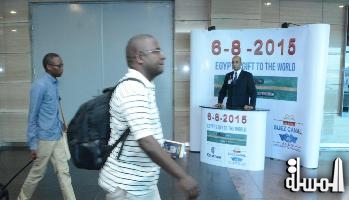 كما وصل عدد من الضيوف على رحلة مصر للطيران القادمة من جوهانسبرج بجنوب إفريقيا. وقد قام فريق العلاقات العامة بمصر للطيران وشركة ميناء القاهرة الجوي باستقبال الضيوف وانهاء اجراءات وصولهم في دقائق معدودة بعد استضافتهم في الاستراحات المخصصة لضيوف حفل افتتاح القناة.