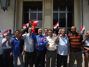القاهرة "المسلة ".... نظم العاملون بوزارة السياحة وقفة احتفالية أمام ديوان عام الوزارة بالعباسية ،اليوم ، الاربعاء، تعبيراً عن فرحتهم بافتتاح قناة السويس الجديدة، وقامت الوزارة برفع علم مصر وعلم القناة على مبناها وقام المحتفلون برفع أعلام مصر ابتهاجا بهذا الحدث الجليل.
