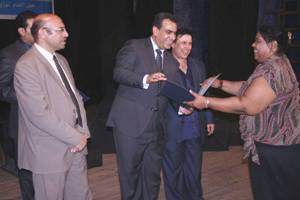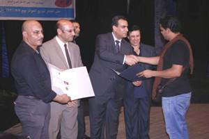 قام النبوى وعبد الحافظ وإبراهيم بتكريم لجان التحكيم بإهدائهم شهادات تقدير وهم: