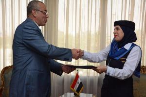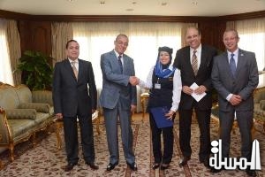 وزير الطيران المصرى يكرم مضيفة جوية على تميزها في خدمة العملاء