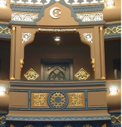يشير الباحث الآثارى أسامة الكسبانى إلى أن الجامعة الأمريكية أضافت هذه القاعة بالجهة الجنوبية بالقصر سنة 1927 طبقا للنص التأسيسى بأعلى مدخل القاعة بشارع الشيخ ريحان وكان يتم تنظيم الحفلات فى تلك القاعة ويتم تأجيرها لإقامة الحفلات الغنائية وكانت أم كلثوم أشهر من غنى بتلك القاعة وأقامت حفلة بها عام 1937 وقام بوضع التصميم المعمارى له أرستون جون ديامنت ويعد من أهم مميزات تلك القاعة أنها شيدت على الطراز العربى الإسلامى وهو ما يدل على حس فنى ومعمارى راقى لهذا المصمم الذى واكب التصميم الداخلى للمبنى الخارجى للقصر الملحق به قاعة المسرح وهو ما تجلى فى التفاصيل المعمارية والزخرفية المستمدة من العمارة الإسلامية بينما التصميم الداخلى فقد اتبع المعمارى نموذج جديد فى تخطيط المسرح وتخلى عن نموذج حدوة الفرس على الرغم من توفر المساحة للتنفيذ وهو ما كان متبع فى تطور تصميم المقاعد فى بدايات القرن العشرين خاصة المسرح الامريكى وتشتمل على 950 مقعد على طابقين.