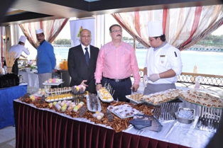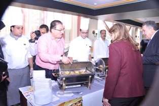 توسط الحضور الحسينى فتحى كبير الطهاة ومحمد عجمى مسئول الأغذية والمشروبات مع فريق شيراتون المنتزة وجائزة أفضل مطبخ حلوى بالإسكندرية .