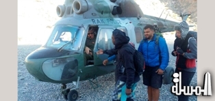 رأس الخيمة "المسلة" .... أنقذ قسم جناح الجو التابع للقيادة العامة لشرطة رأس الخيمة صباح اليوم ، 4 سياح من جنسيات مختلفة بعد أن ضلوا طريقهم في وادي غليلة برأس الخيمة .