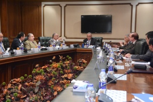 اجتماع وزير الطيران مع عدد من قيادات الوزارة والقيادات الأمنية |