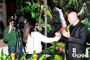 Minister Alain St.Ange being interviewed by Fadwa Zidi of MBC Television at ITB Tourism Trade Fair in Berlin |