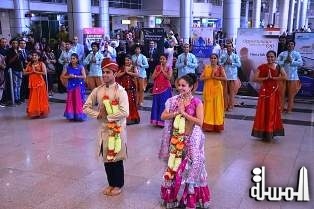 بالصور .. فرقة بوليوود الهندية تقدم عرض فنى راقص بصالة القادمين بمطار القاهرة