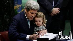 نيويورك "المسلة" ..... فاجأ وزير الخارجية الأمريكي جون كيري الحضور في مبنى الأمم المتحدة، باصطحابه حفيدته، أثناء التوقيع على وثيقة المناخ امس الجمعة 22 أبريل/نيسان.
