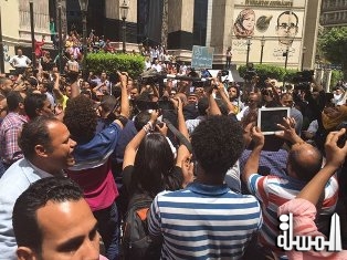 فيما تجمع العشرات من مؤيدي الرئيس عبدالفتاح السيسي على مقربة من مقر النقابة، مرددين هتافات: "بنحبك يا سيسي" و"ادبح يا سيسي".