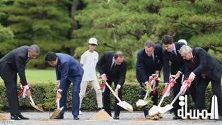 ورحب آبي بزعماء المجموعة واحدا تلو الآخر، عند ضريح "إيسي الكبرى" في وسط اليابان، الذي يخلد إلهة الشمس أماتيراسو أوميكامي، الجدة الأسطورية لأمبراطور اليابان بحسب سكاي نيوز عربية.