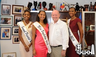 aTP- Arab tourism portal- Miss Seychelles 2016 , Christine Barbier accompanied by her 1st and 2nd Princesses Lianne Barbe and Samiya Albert were received by Minister Alain St.Ange, the Seychelles Minister responsible -----for Tourism and Culture at the Ministry's ESPACE Offices in Victoria.