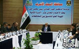 وكان العبادي ترأس، الأربعاء (22 حزيران 2016)، الاجتماع الدوري الحادي عشر / الدورة الثانية للهيئة العليا للتنسيق بين المحافظات في مدينة النجف.
