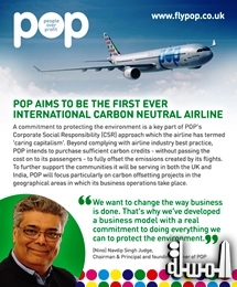 A commitment to protecting the environment is a key part of POP’s Corporate Social Responsibility (CSR) approach, which the airline has termed ‘caring capitalism’. Beyond complying with airline industry best practice, POP intends to purchase sufficient carbon credits - without passing the cost on to its passengers - to fully offset the emissions created by its flights. To further support the communities it will be serving in both the UK and India, POP will focus particularly on carbon-offsetting projects in the geographical areas in which its business operations take place.