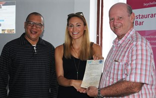 "When I met with Cassie at the Seychelles Tourism Academy last Saturday morning it was pleasing to hear her impression about our mid-ocean islands as well as her thoughts about our MAIA Resort. It is one thing to invite known personalities to our islands, but it is more important to ensure they leave our Seychelles as good Ambassadors" Minister St.Ange said as he, accompanied by Flavien Joubert the Principal of the island's Tourism Academy, participated at the talk by the Peaceful Traveler to Students of the Academy in the presence of a number of lecturers of the institution.
