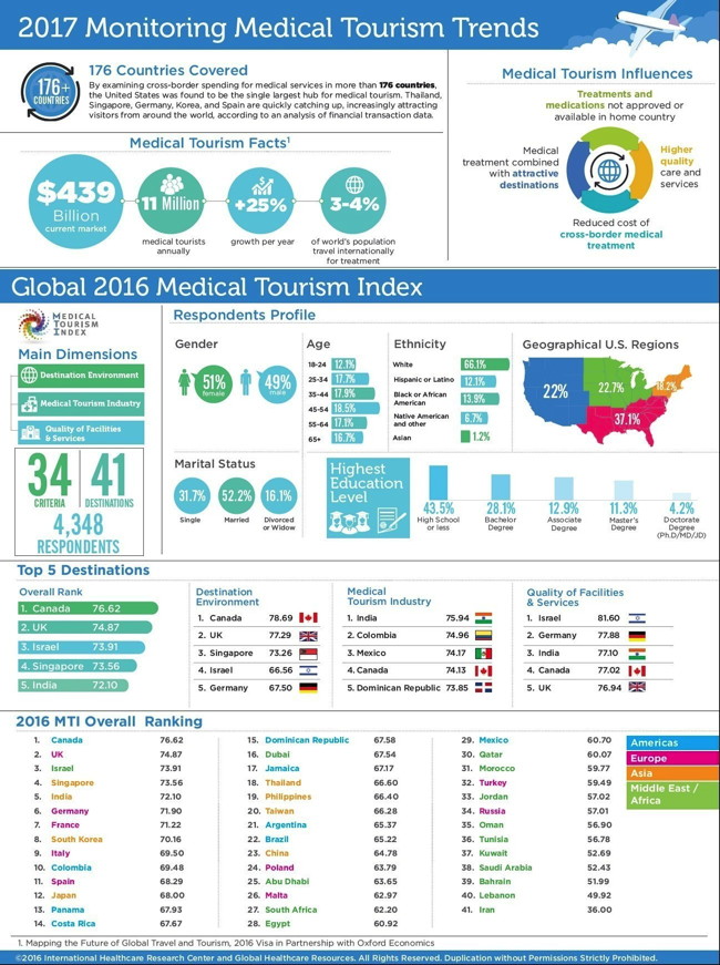 "The borders to quality healthcare access have begun to dissintegrate." MTI™ Co-Authors, Renée-Marie Stephano, JD President of the Medical Tourism Association and Mark Fetscherin, Associate Professor of International Business and Marketing at Rollins College, said a joint statement. "Speculation about the medical tourism industry as a 'phenomenon' is over. This report and the rankings of the the Medical Tourism Index™ provide a unique opportunity for investors seeking new ventures to make smart choices in destinations driving patient travel."