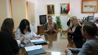 القاهرة "المسلة" ..... استقبلت د. أمل الصبان الأمين العام للمجلس الأعلى للثقافة , الدكتورة الكه كاشل مونى المدير الإقليمى لمعاهد جوته بالشرق الأوسط وشمال أفريقيا , وسيمون برومبايس السكرتير الأول ورئيس القسم الثقافى والتعليمى بسفارة ألمانيا, ومنى شاهين مدير تحرير لاونج بمعهد جوته , بمكتبها بالمجلس , لتوقيع بروتوكول مذكرة تفاهم بين المجلس -----الأعلى للثقافة ومشروع التحرير لاونج بجوته, بحضور رشا عبد المنعم المنسق لمشروع "أنا الملهم " والتواصل مع مؤسسات المجتمع المدنى والهيئات المعنية بالثقافة , بالإضافة لفريق العمل المشترك لمشروع أنا الملهم من المجلس وجوته, حيث ناقش اللقاء تطوير التعليم وتدريب وحدة دعم المسرح المستقل فى الجانب الفنى من خلال الخبراء والمسرحيين والتعاون معهم وتأهيل العاملين بالمركز القومى لثقافة الطفل للتعامل مع ذوى الإحتياجات الخاصة , تدريب العاملين بالمجلس ووزارة الثقافة وزيادة عدد دورات الورش التدريبية لرفع كفاءة العاملين بالمجلس والإهتمام بالتسويق والإعلام ووسائل الإتصال , بالإضافة لتدريب مدربى الأطفال.