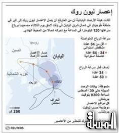 وأفادت هيئة الأرصاد اليابانية أن من المتوقع أن يصل الإعصار ليون روك إلى البر في منطقة طوهوكو في شمال شرق اليابان في وقت لاحق يوم الثلاثاء -----مصحوبا برياح سرعتها 120 كيلومترا في الساعة مع تحركه شمالا من المحيط الهادي.