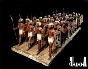 كما أشارت إلى أن من أجمل هذه القطع المختارة نموذج من الخشب يعود لعصر الأسرة الحادية عشر لفرقة من الرماة المصريين أكتشف داخل مقبرة الأمير "مسحتى" بأسيوط، وتمثال ملون من الحجر الرملي للقائد أنتف، أحد القادة العسكريين في عهد الملك "منتوحتب نب حبت رع" من عصر الأسرة الحادية عشر، و تمثال أخر من الألباستر للملك تحتمس الثالث أحد أهم القادة العسكريين في مصر خلال عصر الأسرة الثامنة عشر. هذا بالإضافة إلي درع من الخشب المذهب للملك توت عنخ آمون يصور الملك الشاب وهو يمسك السيف المعكوف بيد واحدة ويقبض على أسدين من ذيولها بيده الأخرى، و سيف معكوف من البرونز للملك توت عنخ آمون، و تمثال القائد العام نخت مين مع زوجته تيا والذي عرف بأنه ولي عهد الملك آي.