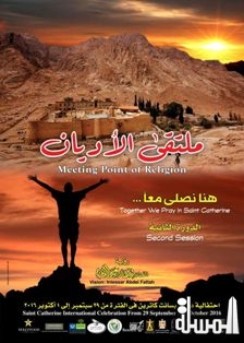 القاهرة "المسلة" ..... تُقام الدورة الثانية من ملتقى الأديان " هنا نُصلى معاً" بسانت كاترين يوم الخميس الموافق 29 سبتمبر الجارى , تحت رعاية منظمة اليونسكو, بالتعاون مع وزارت الثقافة والسياحة والشباب والرياضة, وبحضور الكاتب الصحفى حلمى النمنم وزير الثقافة, اللواء خالد فودة محافظ جنوب سيناء, د. نادية مكرم عبيد وزيرة الهجرة , شريف فتحى وزير الطيران المدنى, بالإضافة لبعض السفراء ونُخبة -----من كبار المثقفين والكُتاب والمبدعين والفنانين.