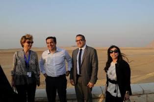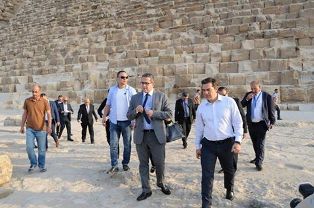 القاهرة "المسلة" ..... حرص "ألكسيس تسيبراس" رئيس الوزراء اليوناني والوفد المرافق له على زيارة منطقة الأهرامات الأثرية أثناء تواجده بمصر للقاء الرئيس عبد الفتاح السيسي، ، وكان في استقباله الدكتور خالد العناني وزير الآثار و يحي راشد وزير السياحة وأشرف محي مدير عام منطقة آثار الهرم.