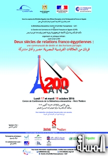 الإسكندرية "المسلة" ..... تشهد مكتبة الإسكندرية يومي 17 و18 أكتوبر 2016 مؤتمر "قرنان من العلاقات الفرنسية المصرية: مصير وآفاق مشتركة"، وذلك تحت رعاية وزارتي الخارجية المصرية والفرنسية.