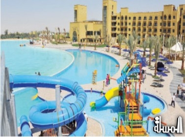 وبين رئيس دائرة التسويق والمبيعات مهند كنعان ان المساحة الاجمالية للفندق تبلغ 218 الف متر مربع تشكل البحيرة المائية العملاقة التي تتوسط الفندق وبمساحة 40 الف متر مربع نقلة نوعية في استخدام وسائل التكنولوجيا الحديثة للمياه واعادة استخدامها لتشكل بحيرة بمساحات شاسعة شبيه بالبحر يمكن الزائر من القيام برياضاته المائية والسباحة واستخدام الالعاب المائية المتنوعة.